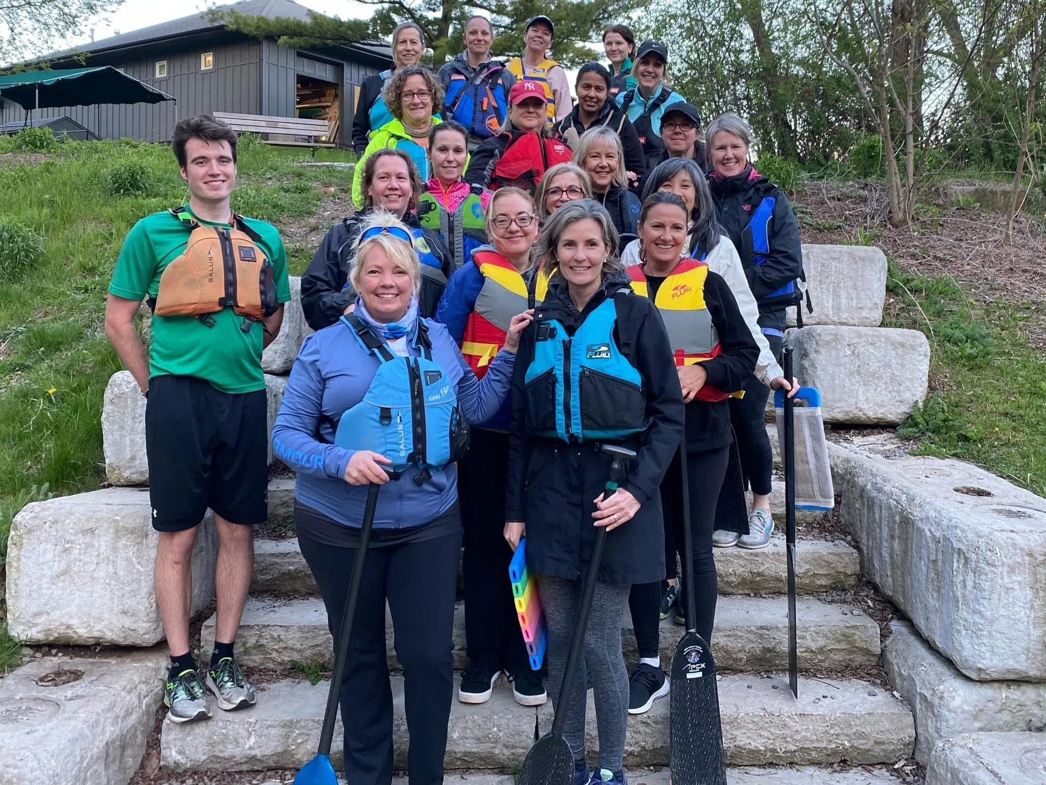 We currently have 3 Dragon Boat teams, each with different levels of commitment and competitiveness. Each crew paddles on a different evening of the week, thereby affording our members the opportunity to paddle a number of times within the week should they wish to do so. Paddles, lifejackets and coaching is provided by the Burloak Canoe Club in Oakville.